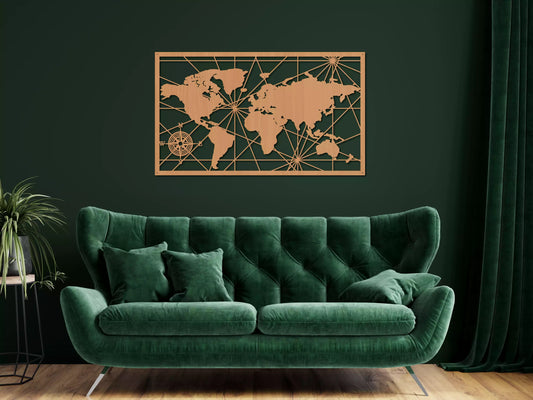Harta Lumii Geometrică - Decorațiune Perete Fibre Lemn