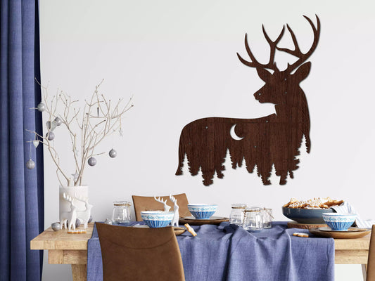 Cerb în Noapte - Decorațiune Perete Fibre Lemn