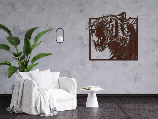 Tigrul Războinic - Decorațiune Perete Fibre Lemn