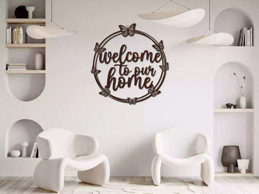 Welcome to Our Home - Decorațiune Perete Fibre Lemn