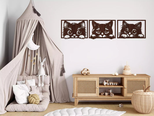 Pisicuțe Curioase - Decorațiune Perete Fibre Lemn